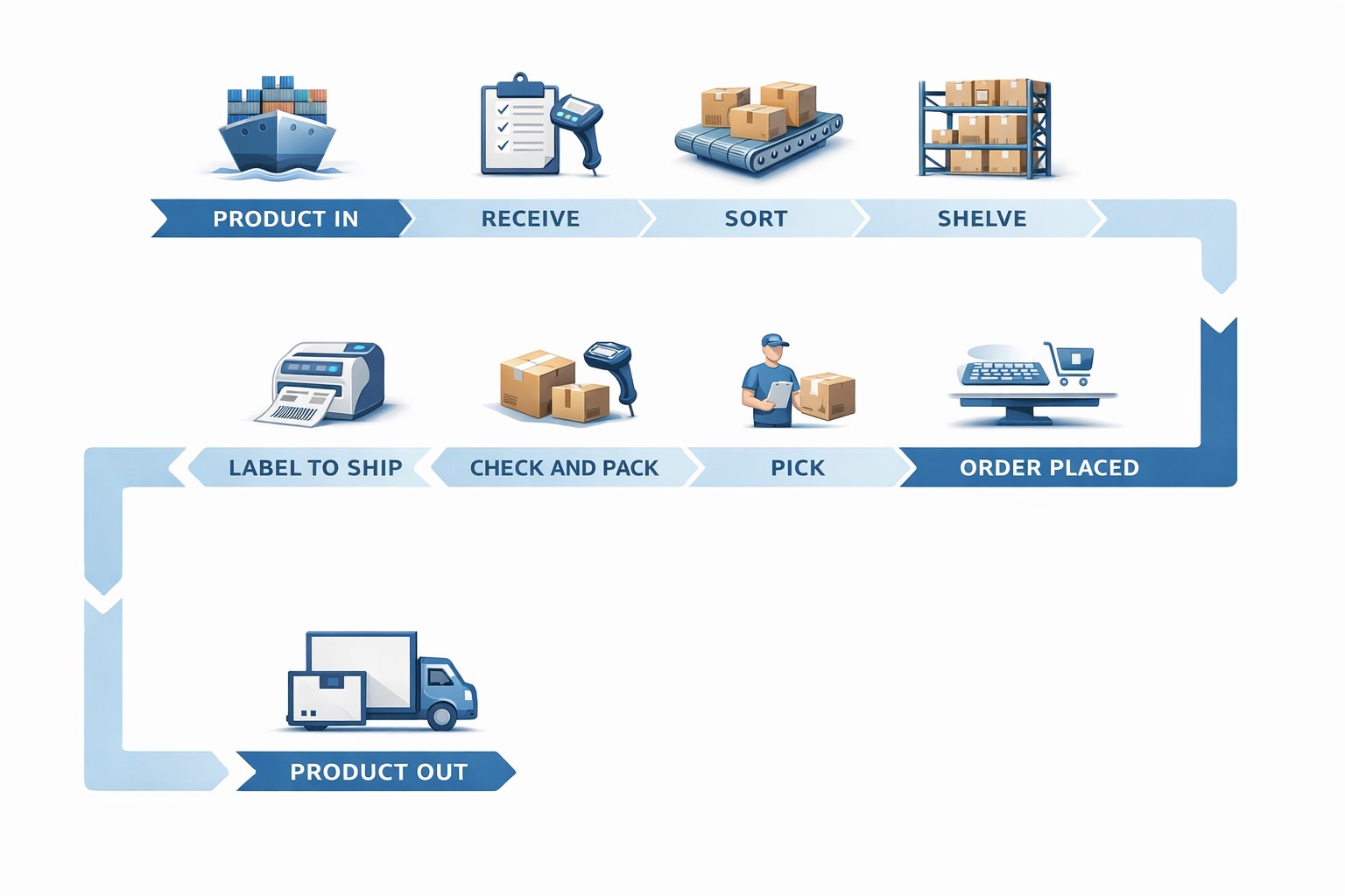 We keep it simple. You provide the labels, we get them to the warehouse, and your order ships directly to you.